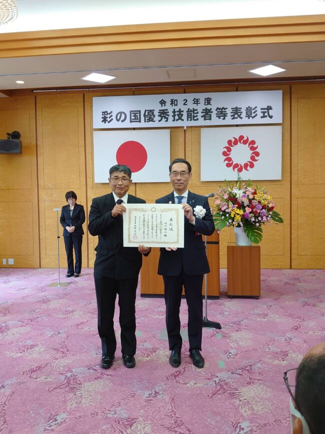 三多商事 川口浩二が令和2年度の彩の国優秀技能者に表彰されました インフォメーションBy 佐々木hpm2020年11月30日三多商事 川口浩二が令和2年度の彩の国優秀技能者に表彰されました。 埼玉県知事 大野元裕知事との記念撮影です。