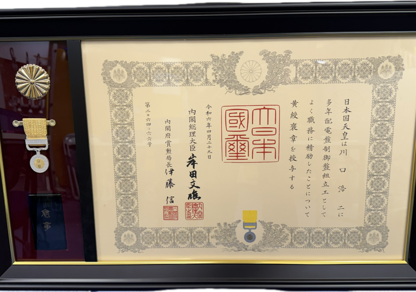 栄廣電設株式会社社長川口浩二が多年配電盤制御盤組立工として黄綬褒章を授与されました