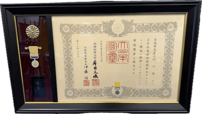 栄廣電設株式会社社長川口浩二が多年配電盤制御盤組立工として黄綬褒章を授与されました